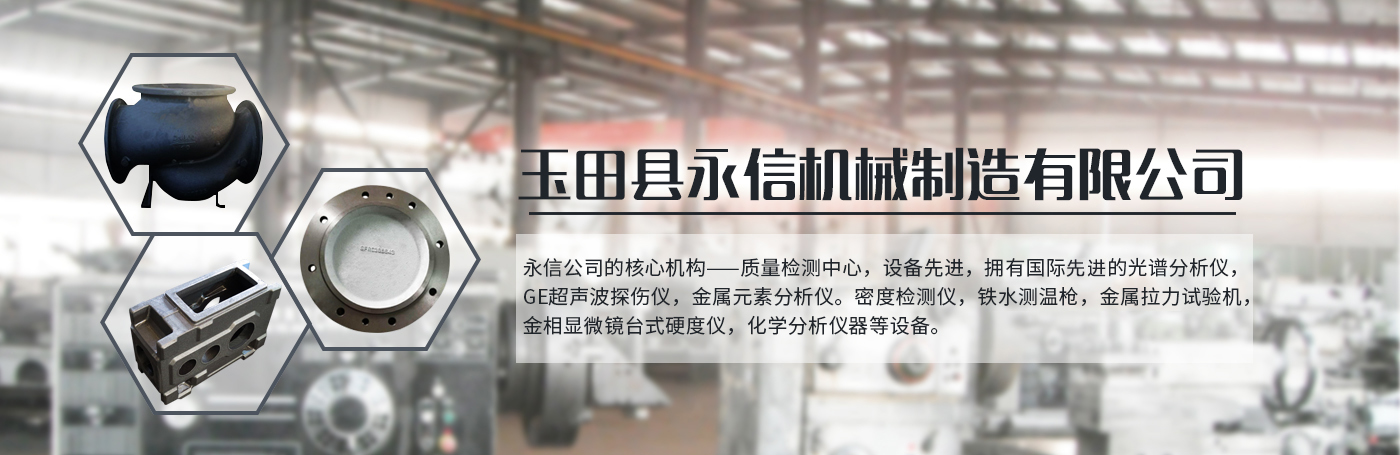 玉田縣永信機械制造有限公司總公司成立于2009年,注冊資金5000萬元人民幣,占地35畝,具備年產2萬噸減速機、閥體、電機座鑄件等的生產能力,是國家工信部批準的鑄造準入企業。公司是從事工程機械鑄件,機床鑄件生產和銷售的泵閥鑄件廠家,配備全自動生產設備和環保設施,加快綠色發展。公司以生產灰鑄鐵、球墨鑄鐵鑄、耐磨鑄鐵件、工程機械鑄件、機床鑄件為主。鑄造車間擁有自動和手工兩條造型生產線及液壓控制的覆膜砂制芯系統。鑄造過程含造型、電爐熔煉澆鑄、抖箱、噴丸拋光、打磨等工序。樹脂砂、覆膜砂、粘土砂造型生產工藝成熟穩固,年產量超過2萬噸,其中,樹脂砂自動造型生產線,以批量大、標準高、誤差小的特點深得用戶信賴。樹脂砂造型生產模式以滿足異型和私人定制為特色,成為企業成長的重要組成部分。機械加工車間擁有3套加工中心、15臺數控車床及其它加工設備。永信公司的核心機構——質量檢測中心,擁有光譜分析儀、GE超聲波探傷儀,金屬元素分析儀,密度測試儀,鐵水測溫槍、金屬拉力實驗機、金相顯微鏡、臺式硬度儀